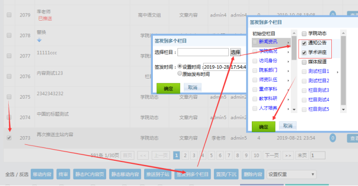 G:簽發到多個欄目(一篇內容簽發到多個欄目)
