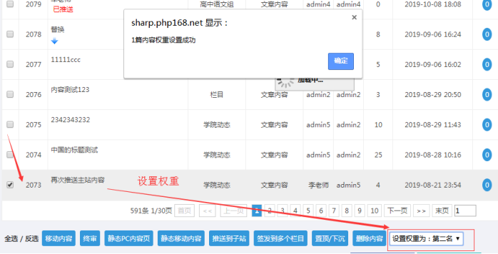 H:權重設置(權重大的在內容欄目前面)