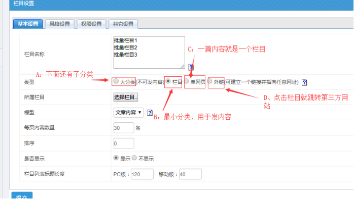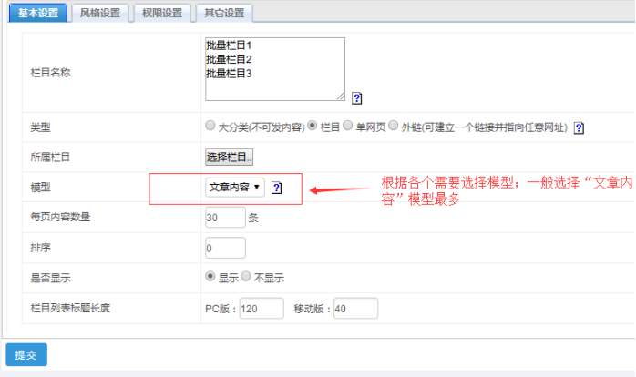 最后點擊提交即可,欄目即可創建完成(其他的設置用默認即可,有需要可以再去修改)