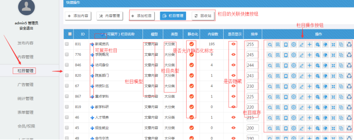 五、欄目管理;