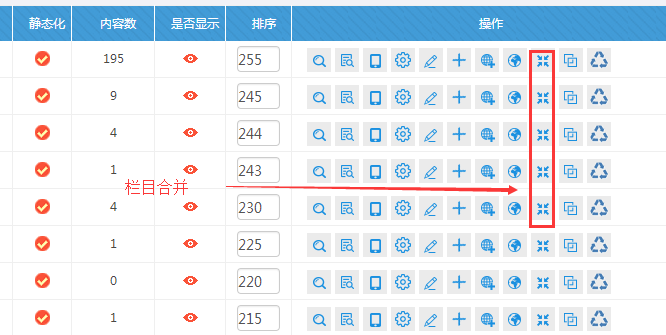 F:欄目合并(如果需要將一個欄目的內容,合并到另外一個欄目,點擊此處)
