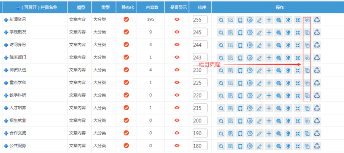 G:欄目克隆(如果想快速的創建一批一模一樣的欄目,點擊此處)
