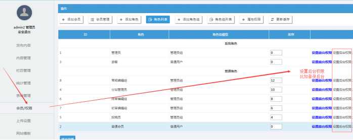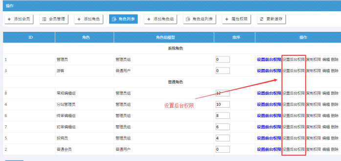 A:角色前臺權限設置(角色權限一般設置前臺權限;角色大部分設置基礎權限即可)