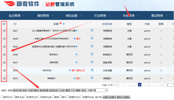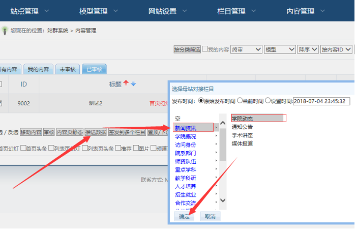 登陸分站后臺----點(diǎn)擊“內(nèi)容管理”-------勾選所需的內(nèi)容----推送數(shù)據(jù)