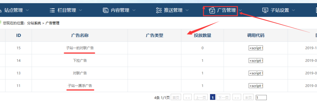 假設我們已經做好了廣告類型的創建、廣告JS在首頁的放置;那么我們現在主要就是使用廣告了。