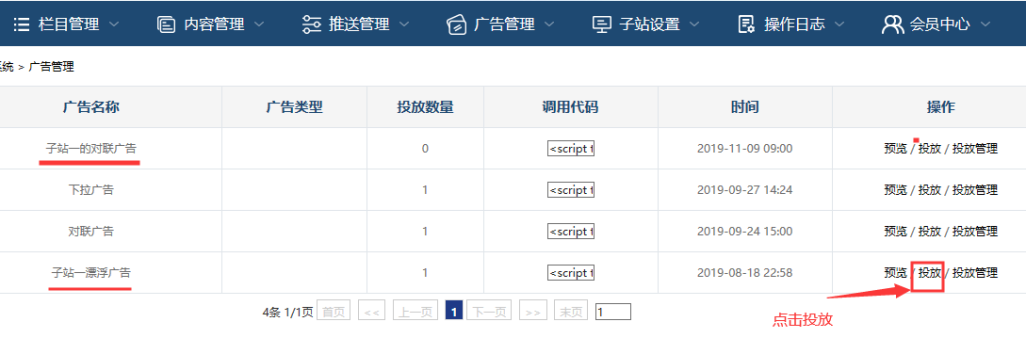如果投放里面之前為0個廣告,就必須點擊此處投放;如果之前有投放過,點擊此處投放,那么之前的會作廢并要關閉: