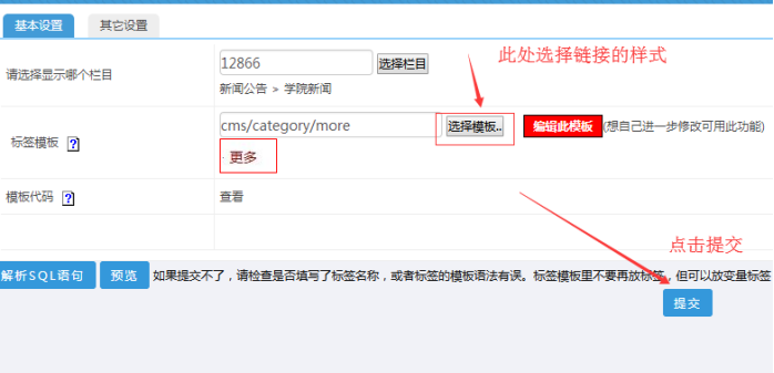 二、 “更多”的鏈接創建(欄目鏈接標簽);