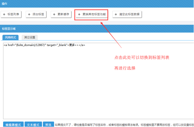 每個站點的管理員,都可以對自己的站點進行標簽操作;現在講解“更多”標簽的另外一種做法,就是雙擊然后選擇欄目的方式。