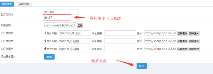 C:圖片的尺寸高度可以修改,最后點擊“提交”