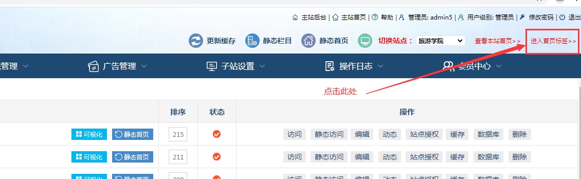 C、登錄站點后臺后-----點擊【進入首頁標簽】