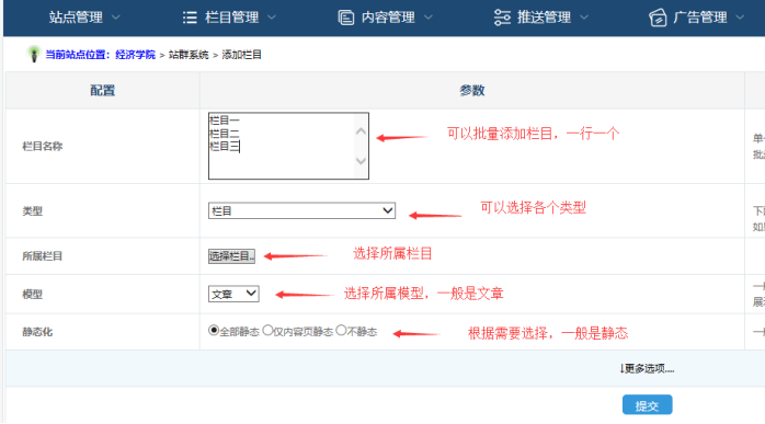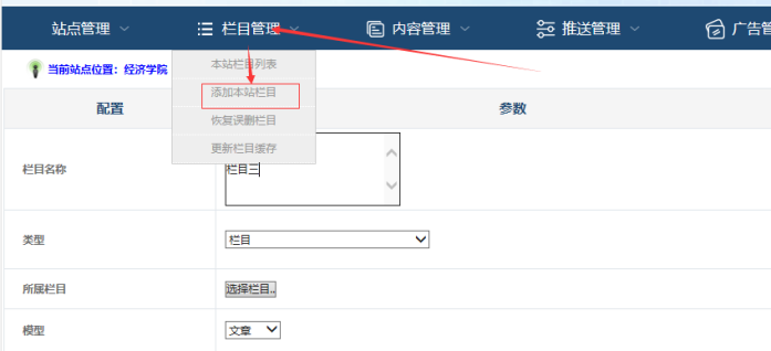 站群子站添加欄目