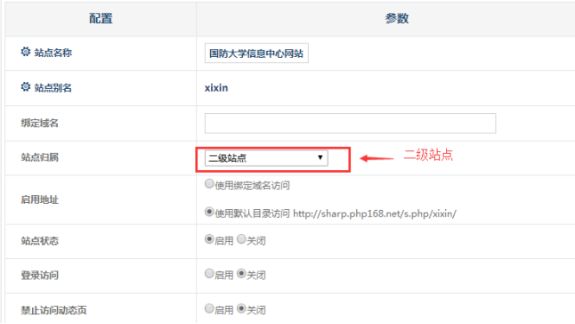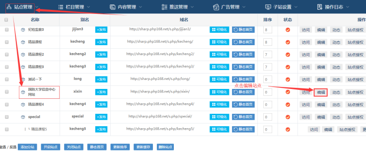 唯一不同的是,選擇站點歸屬;站群后臺----點擊此站點編輯: