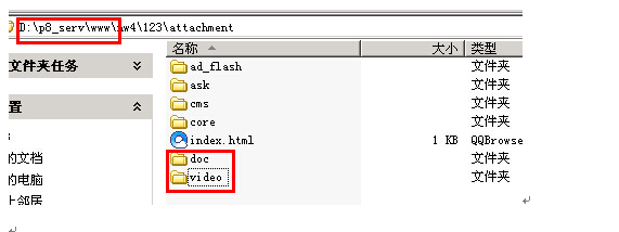 在服務器里面先創建需要的文件,程序根目錄下/attachement下創建視頻存的文件為video ,文檔就放doc