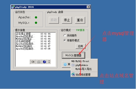B:點擊mysql管理器-------站點域名管理。