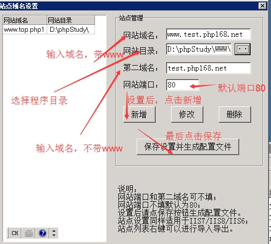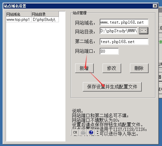 域名和端口填寫后,需要點擊“新增”---“保存設置并生成配置文件”,如下圖