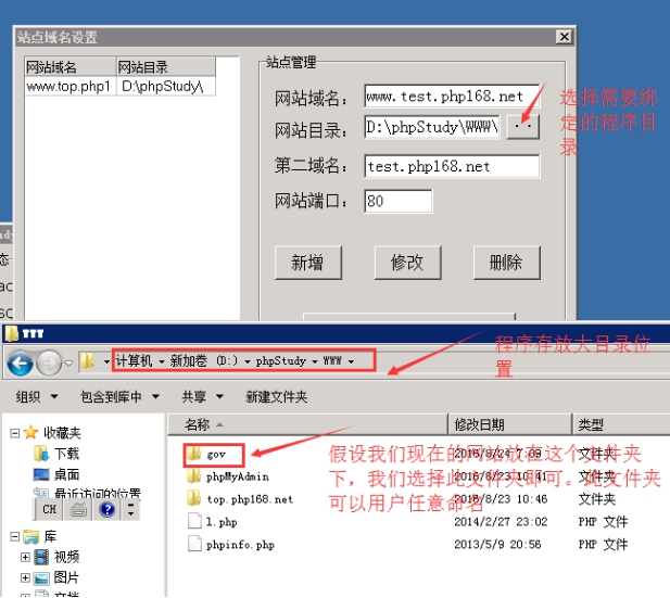 第二個紅框里面是程序存放的目錄,phpstudy的環境默認確定所有網站程序必須都放在www下的目錄下。