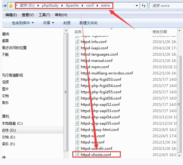 A、進入PHP環境(以PHPstudy為列,其他的對應修改方法)此路徑,用記事本打開httpd-vhosts.conf 文件