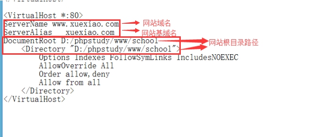 是需要修改網站路徑的地方,改為實際目錄即可;一般是將school改為對應自己的文件夾。 另外對應的域
